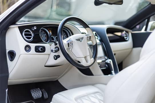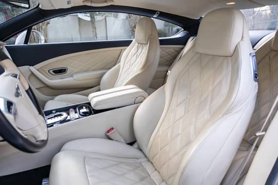 Inside the Bentley Continental, the cabin features hand-crafted materials including premium leather, wood trim, and high-quality finishes throughout. The interior provides comfortable seating for four passengers with power-adjustable heated seats and advanced climate control. Additional features include a premium infotainment system with navigation, Bluetooth connectivity, a high-end sound system, keyless entry, push-button start, and a multifunction steering wheel. The quiet cabin, smooth ride, and powerful engine make every drive both relaxing and exhilarating, reflecting the luxury experience Bentley vehicles are known for.
